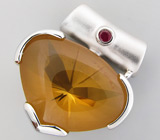 Кулон с крупным цитрином авторской огранки, зеленым турмалином и бриллиантами